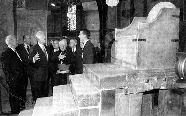 Der Thron Karls des Großen interessierte den amerikanischen Präsidenten besonders. Vielleicht erinnert er sich der berühmten amerikanischen Anhänger der Weltreichslehre wie Andrew Carnegie, für die die Welt in die Ära übernationaler Großagglomerationen einzutreten hatte.