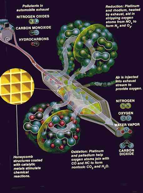 USING unleaded gasoline pays off in three ways: It keeps lead from poisoning the air, reduces maintenance, and allows a catalytic converter (right) to do its job. Installed on new cars sold in the U.S. since 1975, converters eliminate 90 percent of carbon monoxide and hydrocarbons and now great- ~ ly reduce nitrogen oxides. But only a few tankfuls of leaded gas can destroy converter effectiveness.