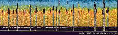 a lidar image (below), made by bouncing a laser beam off particles in the