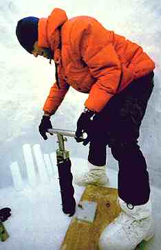 Like time capsules of the atmosphere, ice cores from a Yukon glacier contain information about air quality before the industrial revolution. By analyzing trapped air bubbles, a research team including Dr. Gerald Holdsworth (top) has learned that carbon dioxide levels in today's atmosphere are 27 percent higher than they were before 1850.