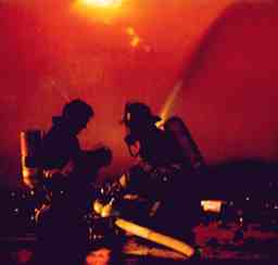 fire in Elizabeth, New Jersey, firefighters (above) put on breathing units