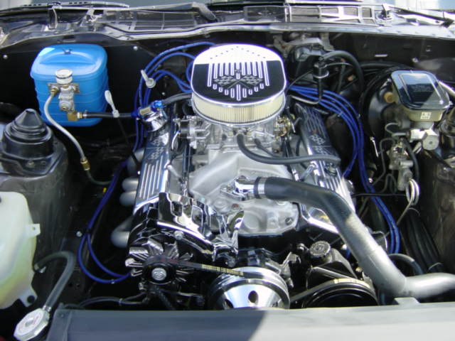| Engine Original 305 C.I.D. Crane 274H cam Adv. Duration 274 degrees Gross Lift .450" Crane Cams Valve Springs Summit Hardened Push rods Comp Cams Magnum Roller Rocker Arms Orginal Cast Iron Heads: pocket ported, bowl blend, 3 angle valve job Cloyes Double Roller Timing Chain Fuel Delivery Edelbrock Performer RPM Intake Manifold 600cfm Edelbrock Performer Carburator Carter Electic Fuel Pump (100gph) Moroso Cool Can Holley Fuel Pressure Regulator Ignition System Accel Blue Print HEI Vacuum Advance Distrubuter Accel Recurve Kit Accel Wires Drivetrain Richmond 4.10 Ring and Pinion B&M 700R-4 Transmission B&M Holeshot Non-Lockup Torque Converter (3000 Stall Speed) B&M Ratchet Shifter Exhaust Hedman 1 5/8 primary full length headers Flowmaster Cat. back exhaust system Custom Y-pipe w/ flowtech cut outs |