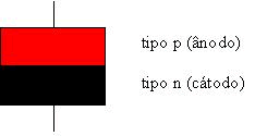 As suas dimensões são pequenas, com cerca de 1 cm de comprimento. Se cortássemos um díodo iríamos encontrar uma estrutura do tipo seguinte