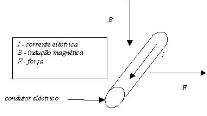 Se inverter o sentido de B ou de I, o sentido de F é invertido. É este fenómeno que permite o funcionamento dos motores elétricos. |