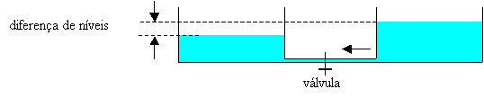 Se tivermos dois depósitos de água com níveis diferentes e abrirmos a válvula que liga os dois depósitos, haverá passagem de água do depósito com um nível superior para o depósito com o nível inferior, devido a haver uma diferença de níveis entre os dois depósitos.