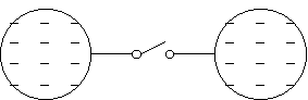 No caso representado na figura, haverá movimento de cargas da esfera da direita para a da esquerda. Este movimento de cargas (corrente elétrica) só termina quando ambas as esferas estiverem a igual potencial (diferença de potencial igual a zero). As grandezas potencial elétrico e tensão elétrica exprimem-se na unidade Volt (V). |