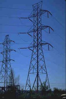 postes de alta tensão suportam os cabos elétricos que transportam a corrente
