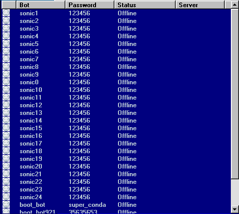 You can see how many Bots are Loaded and How many are Logged in means Online. Now I Click on Login to Connect the 30 bots. As you can see here down on the Picture not all Bots are logged in it depends on the Internet Connection you have. I am on Dial Up. Click Show Status to see who is logged in and who not