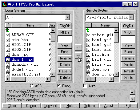 Once you are connected, you should see a screen similar to the one below, which is a screen capture of WS_FTP: