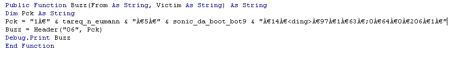 Did you see what i did here? Easy, Huh - So now this is a 95% Packet now we need to change the Rest.As i told you i was tareq_n_eumann and i did send sonic_da_boot_bot9 a Buzz pm. So we need to Changed tareq_n_eumann to From and sonic_da_boot_bot9 to Victim. This all looks like this.