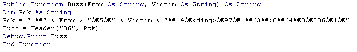 Now I gonna tell you only what you need to Know to Read all of this stuff good so you won't make any Mistakes. Just for these that do not know , What you see here is a Buzz Pm. My Yahoo id was tareq_n_eumann and i send a Buzz to sonic_da_boot_bot9 . the <ding> is the Buzz. At this Point i Start Coding the Packet.I open my Visual Basic 6.0 and Open a Standard Exe and than a new Module.