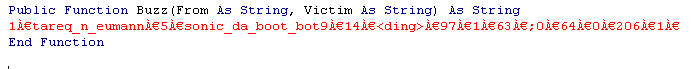 Public Function Buzz(From As String, Victim As String)As String