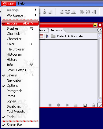 Creating a custom action is relatively easy, so in this tutorial I am going to create a custom action for putting a 1px border around an image. I will start by opening up the Actions Palette (Window > Actions; ALT + F9).