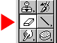 Here we are going to erase the circle we created in the Circles and Squares tutorial. In the vertical tool bar on the left side of the screen you will see a little eraser tool like shown. Click on this.