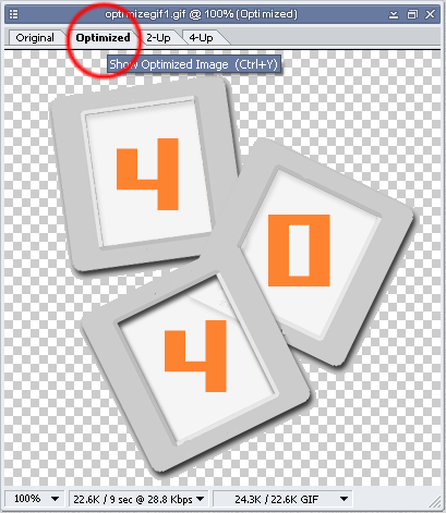 Now in the graphics display window press on the Optimize tab (CTRL + Y) . This will display the graphic as it will look once it is optimized.