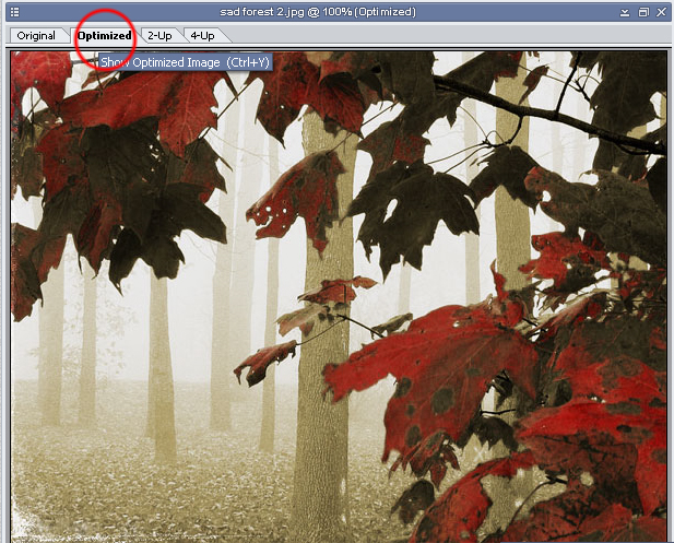 Now in the graphics display window press on the Optimize tab (CTRL + Y) . This will display the graphic as it will look once it is optimized.