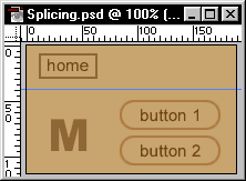Let's start with a common situation. We have a navigation type device for the web with a few section buttons and a home button. Press Ctrl-R (Mac: Command-R) to show rulers. Also go to VIEW and make sure Snap to Guides is checked.