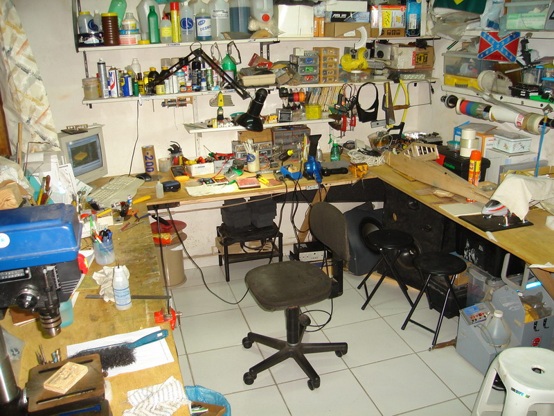 Comecei a mexer com aeromodelos há bastante tempo atrás (é...o tempo passa...) lá pelos meus 13 anos, quando montei dois kits da Mobral, com um motor Sassi .15 VCC (que tenho até hoje!). Na época iniciei o hobby praticamente sozinho, sem nenhuma ajuda externa a não ser a de um balconista da Lima Hobbies ali da Galeria Glória ( e da época em que as coisas não custavam tão caro lá) e de uns 3 ou quatro livros que comprei e que li e reli várias vezes. Paralelamente eu gostava de mexer com eletrônica também, montando pequenos dispositivos... Aos 15 anos acabei deixando de lado ambos os hobbies e comecei a me dedicar mais à música (violão e bateria)....e levei-a como hobby até os 30 praticamente....tocando em várias bandas, me divertindo muito mas no fim, cansando de gastar sem ganhar nada, hehehe.