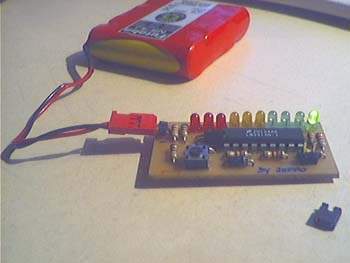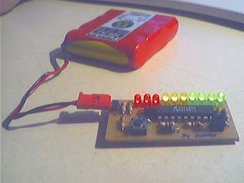 Veja a aparência do Hotcheck SEM o JUMPER - acende um led por vez, mostrando em que ponto está a carga da bateria:
