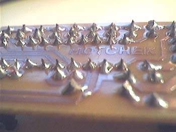 Limpe bem a superfície com um pincel seco e, agora sim, tava curioso pra saber o que fazer com o esmalte de unha, hehe? Pois é, aplique uma camada de esmalte incolor (tipo "base") no lado da solda, para proteger as pistas cobreadas. O esmalte é como aquele "lado verde" das placas de computador, o que nada mais é do que um verniz protetor colorido.