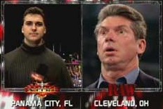 The next night on the July 10th Smackdown, Heyman revealed his motives for the re-formation of ECW, he said Vince stole his concepts, his stars, and his cable slot, which left him out of business, therefore, in return, he stole his children and Shane & Stephanie will run the WWF out of business! He also claimed that it was he that gave Shane the info to buy WCW. Also on Smackdown, Jeff Hardy became the new Hardcore champ with an assist from Edge & Christian who were mad that the former champ used the name Awesome! Other matches added to the PPV include ECW's Tazz vs. WWF's Tajiri (formerly of ECW), WWF referee Earl Hebner vs. WCW ref Nick Patrick, and team WWF looks like being Austin, Angle, Jericho, Undertaker, & Kane in the main event against team ECW/WCW. From that I'd guess the team will consist of Booker T, DDP, Rhyno, Storm, & Awesome, added to the matches already announced that include X-Pac vs. Billy Kidman and Lita & Trish vs. Torrie & Stacey in a bra & panties match!