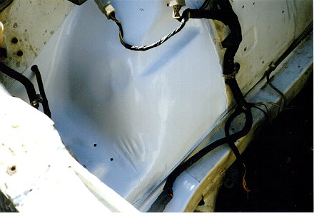 Repainted area with paint. The new paint job Looked so nice compared to the original that I almost repainted the whole compartment.