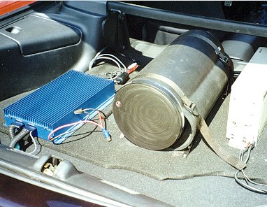 The back has a 75X4 Crutchfield AMP that I bought years ago. The subwoofer is made by Bazooka which is a self powered sub. The cd changer is by Sony.