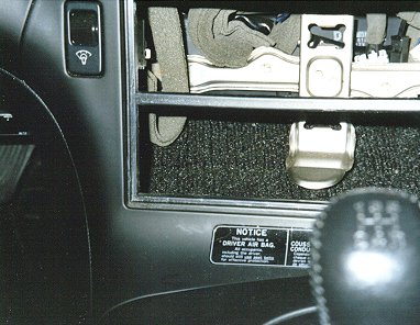 This picture shows the factory R1 radio. Removal was easy using tools supplied by the stereo dealer. The two U-shaped tools goes in to the two sides of the radio and release the clip inside and the radio slides out. The same goes for the box on the bottom.