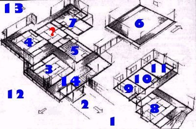 The "?" is a place which I can't identify yet. If anyone knows what that place is, please let me know. Thanks. Also If I'm wrong in any of the place/locations, let me know!