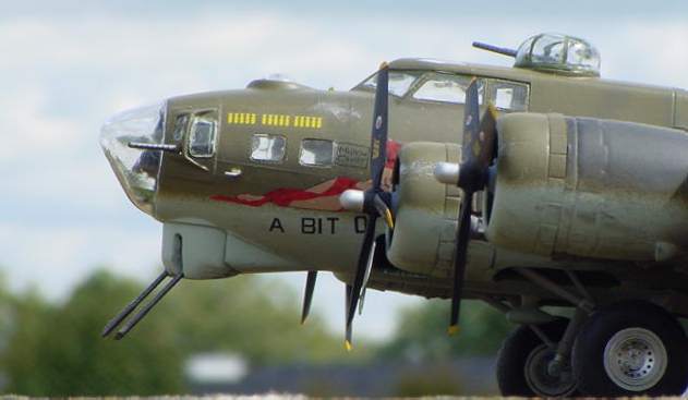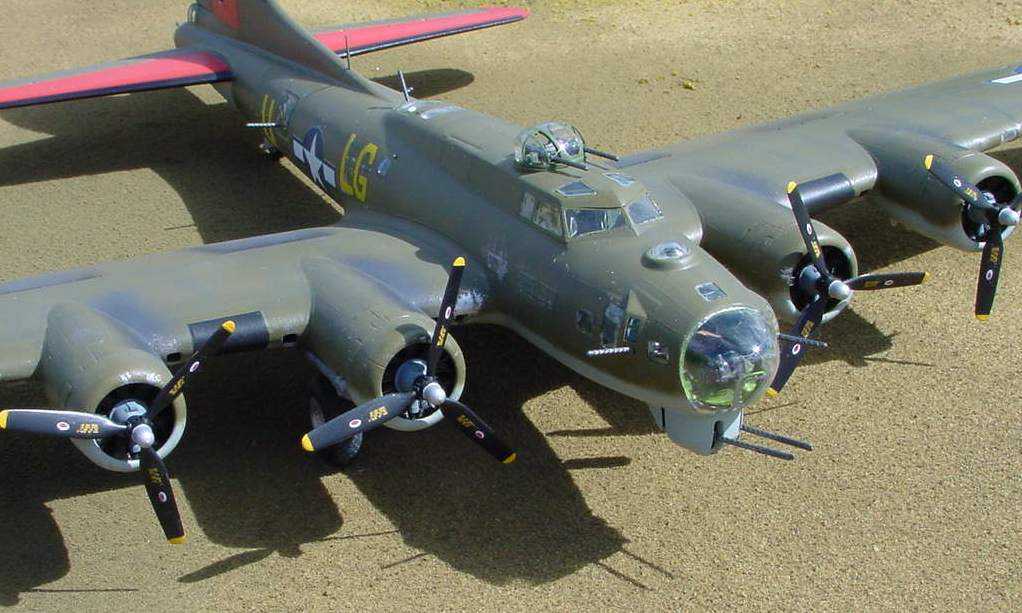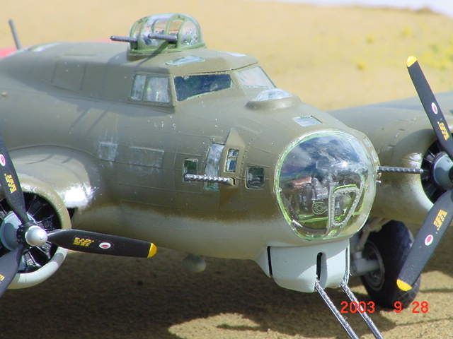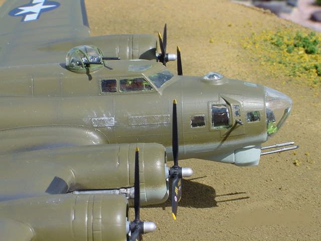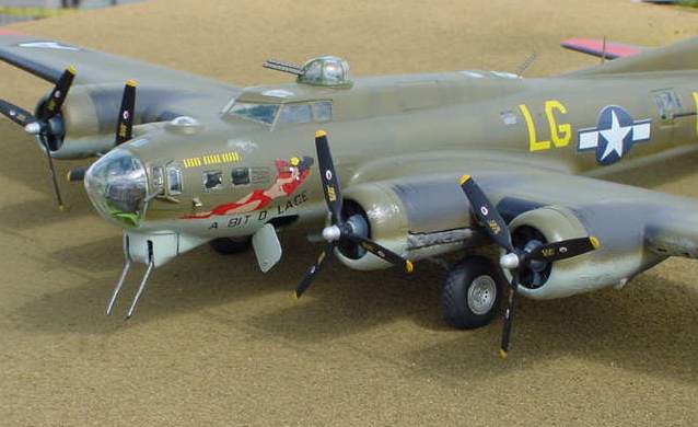 | Monogram 1/48 B-17G Flying Fortress The Flying Fortress was the primary daylight bomber used in the ETO during WWII. From 1942 to 1945 thousands of B-17's flew from bases in England to bomb Nazi Germany. The Monogram B-17 has been around now for over 20 years. I had built this model many years ago when it first came out. however, at that time I was more interested in getting the model done so I could play with it then I was in doing a good job. The kit is just OK. The interior is detailed but it's accuracy leaves a lot to be desired. The fit is poor. There are many gaps and seams that need filling. Especially around the nacelles. I used the Verlinden detail set. It contains PE and resing parts to replace kit details. You have the option of diplaying the bomb bay doors open with the detail set but that requires you to do a lot more work in the bomb bay area to make it presentable. There are numerous schemes to choose from depending on which unit and particular plane you want to depict. I opted for a freelance version. I used the Microscale decals for 'A Bit O' Lace' which was actually a late war NMF Fort. But being I was a bit apprehensive of applying a natural metal finish on this model I opted for a OD green and light grey early war scheme. This would be accurate for a earlt G model Fort. By the time the G was fully in use they all were NMF. Since it's my model I can take all the artistic license I want. I think this model captures the essence of a B-17 in WWII. |