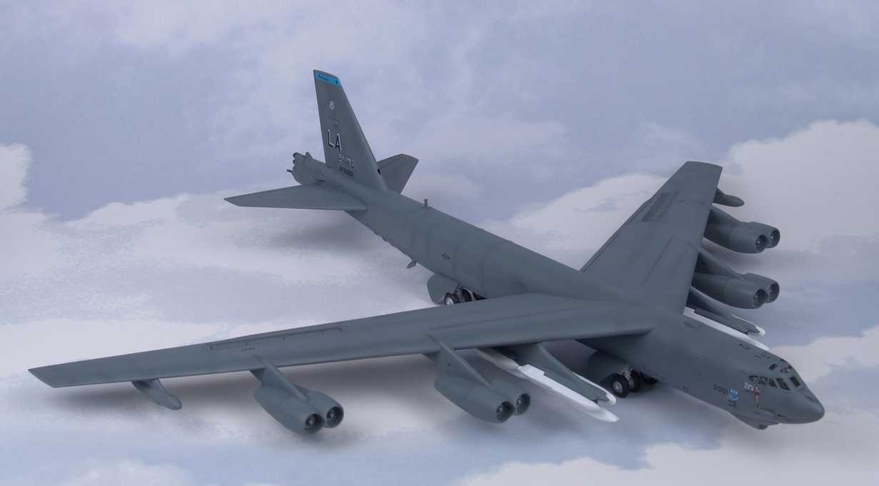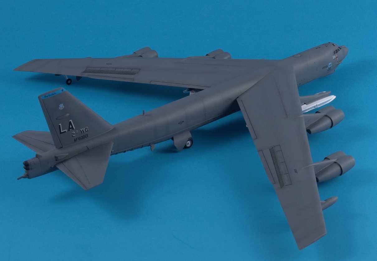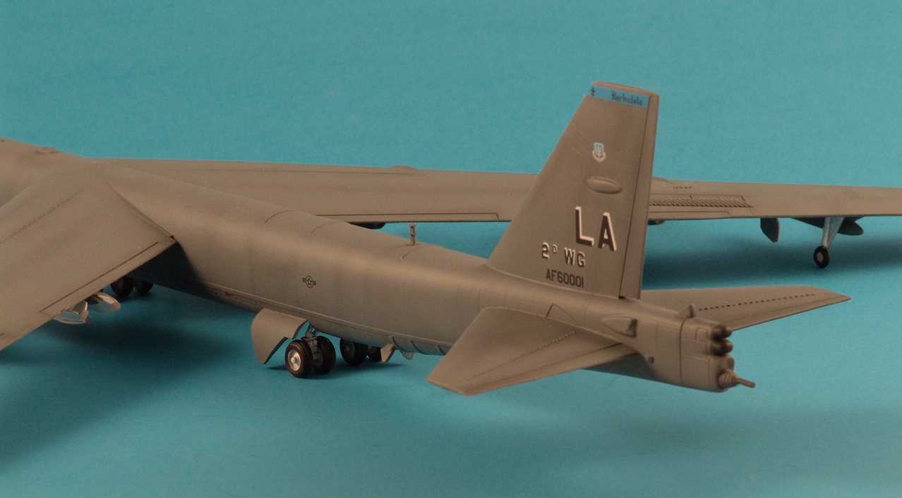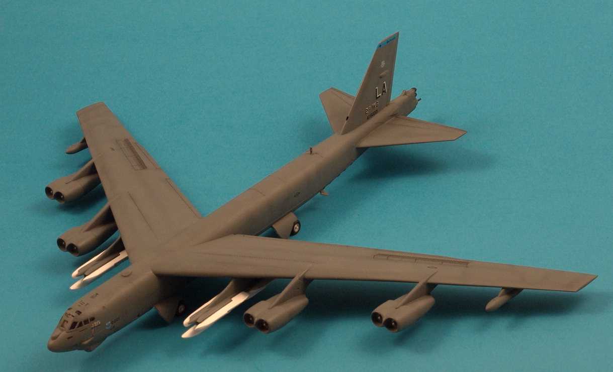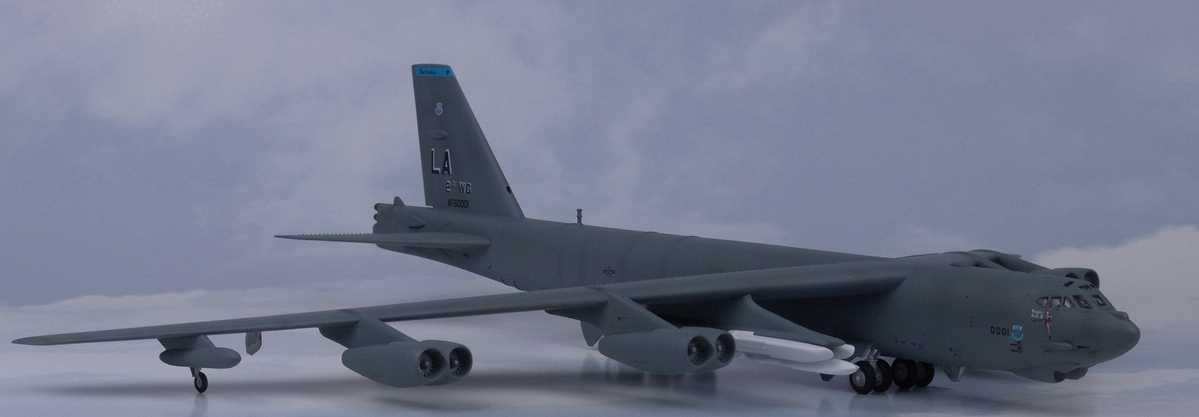 | 1/144 RevellAG B-52H Here's the venerable BUFF in it's final configuration as part of the USAF's ACC (Air Combat Command). This is RevellAG's boxing of the original Revell kit from the early 90's. Overall the fit is not bad. The fuse seam does need work and there are some gaps on the engine pylons that need attention. The biggest chore however, is building and sanding all 12 of those ALCM's!! The kit is built entirely OOB. The panel lines were pre-shaded using grimy black. Paint is Tamiya acrylic with PollyScale clear flat to seal everything in. This model recently placed 1st in the 2006 IPMS Gateway Invitational. |