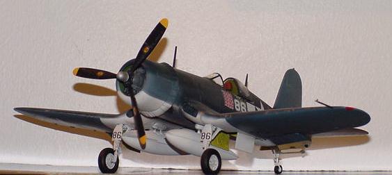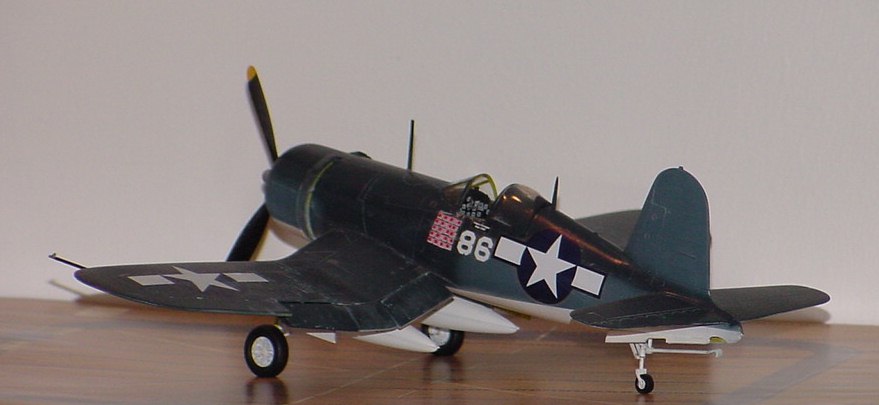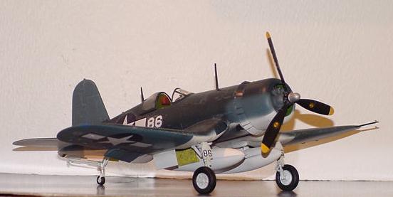 | This is Academy's 1/48 F4U-1D Corsair. It's built OOB. Not a bad kit and a low buck alternative to the Tamiya bent winged bird. The decals could be better as they had a tendency to silver, even with the gloss coat. Colors are from MM enamels. A pleasant build of a great looking and historically significant airplane | ||||||||||||||||||||||