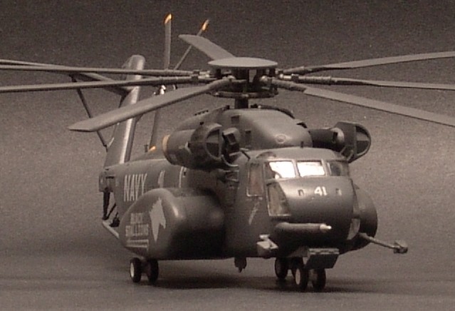 | This is Italeri's 1/72 MH-53E Sea Dragon. The Sea Dragon is the largest helo in use in the Western World. It's used by the Navy and marines for mine sweeping duties and special forces operations. The kit is very nice but unfortunately it's out-of-production. I built it OOB. | ||||||||||||||||