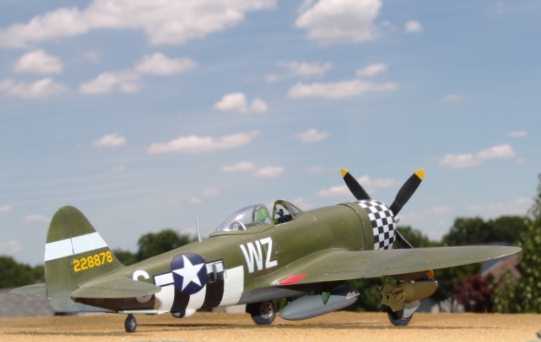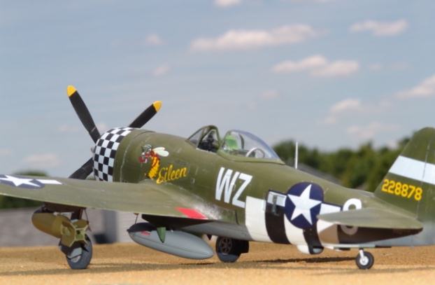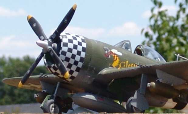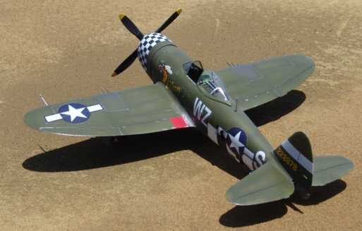 | Academy 1/48 P-47D-27 Thunderbolt This is my P-47D bubbletop Thunderbolt. The Academy kit is a great, low cost alternative to the Tamiya one. You're given plenty of aramament options to choose from. I did use the Eduard mini PE detail set. Not that the model really needs it but you do get seatbelts and those are a definite need in my opinion. The kit goes together well and a bit of putty is needed for the fuse seams and around the gun ports on the wing. I used True Details resin wheels since they are 'flattened' to give the illusion of weight. The model is painted with Testors enamles. I pre-shaded the panel lines with Floquil grimy black. The panel lines were given an enamel wash afte the glosscoat was applied for decaling. The kit decals are so-so. The checkerboard on the nose needed a lot of solvaset and releif cuts to get it to settle down. I opted to paint the invasion stripes rather than use the kit supplied decal. Academy decals have a nasty tendency to silver and I got lucky with this build as there were only a few spots where that happened. As usual it was given a weathering job with Floquil's grimy black then Testors dull-coated to seal everything in. Paint chipping was done with a Prisma-Color silver pencil. |