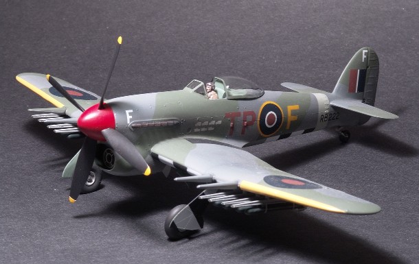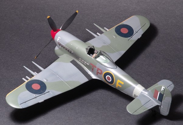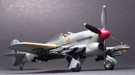 | 1/48 Monogram Typhoon MkIb The Typhoon was used by the RAF during WWII as a ground attack aircraft. Not fast enough to be a fighter it made up for that with its toughness and ability to deliver a punch to the enemy.This is one of Monogram's classic kits from the mid 1960's. Even though it is over 40 years old it is still a great kit. I built this one OOB. Paint is Aeromaster acrylics. |
