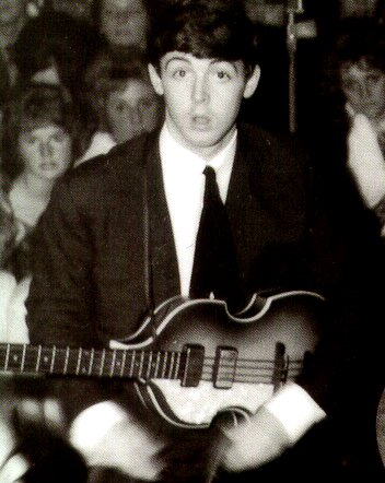 | Paul, with the first Hofner, looking somewhat stunned. 1962 . Note the original Diamond pickups, with one falling out! | ||||||||||||||||||||||||||||||||||||||||||||||||||||||||||||||||||||||||||||||||||||||||||||||||||||
