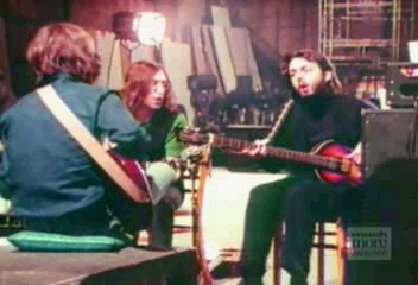 | Remember the 'outtakes' scene in the Anthology videos? All the legendary Beatles instruments were together again in Abbey Road Studio 2. But now the truth can be told...The Beatles were there WITH their legendary guitars and drums! In the first picture, look where Ringos looking, and over his shoulder, one can make out Pauls Hofner leaning against an amp. And in the next shot, Paul himself helpfully points ti the basses distinctive headstock. You think they played the guitars again in the same studio used to record "She Loves You"? Same instruments even! It boggles the guitar fans mind.... | ||||||||||||||||||||||||||||||||||||||||||||||||||||||||||||||||||||||||||||||||||||||||||||||||||||