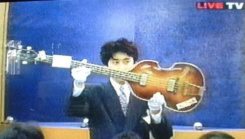 | Far left and right, John Bunnings old Hofner bass, with Paul McCartneys second Hofner in the middle for comparison. | ||||||||||||||||||||||||||||||||||||||||||||||||||||||||||||||||||||||||||||