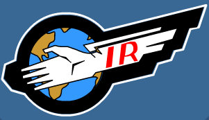 The official International Rescue emblem features an outstretched hand over a view of the Earth with the initials "IR" featured in red.