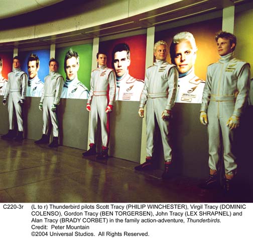John Tracy (Lex Shrapnel): (age 22) Normally the astronaut in charge of Thunderbird 5, by the end of the film John is temporarily grounded due to the vicious assault by The Hood against the space station. Burned and bruised from the attack, he has a healthy new respect for how quickly life in space can become deadly. Quiet, shy and introspective, particularly since his mother's death, it is his thoughtful, sensible ability to make decisions that his father has come to rely on in times of crisis. (Note that he and Virgil are switched from the classic birth order in this film, though some of the movie sourcebooks place him as the eldest, as he was originally planned to be).