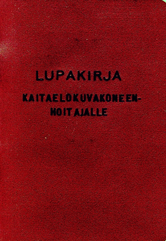Kaitaelokuvakoneenhoitajan lupakirjan kansi
