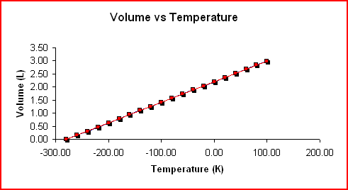 If the volume is doubled the Kelvin temperature will double and if the volume is halved the Kelvin temperature will be halved. Mathematically stated, Charles's Law says that V/T = k, where k is a constant for a given volume of gas at constant pressure.