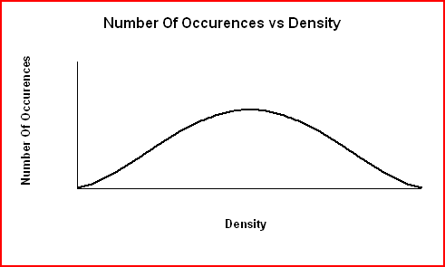 The graph of Number Of Occurences vs Density shown below produce an error curve for low precision data. When errors are large resulting in low precision data, the data are more spread out and the curve is broader and less sharp.