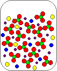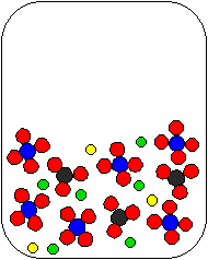 6) NiSO4(aq) and Li2CO3(aq) are combined in a beaker. Which of the following diagrams is the most appropriate representation of the contents of the beaker after any reaction occurs? (Water molecules from the aqueous solutions are not shown.)