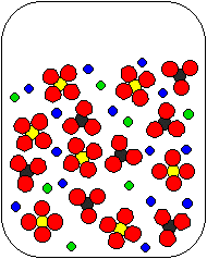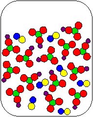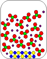 4) MgSO3 and HClO4(aq) are combined in a beaker. Which of the following diagrams is the most appropriate representation of the contents of the beaker after any reaction occurs? (Water molecules from the aqueous solutions are not shown.)