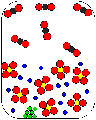 8) Cu(NO3)2(aq) and K2S(aq) are combined in a beaker. Which of the following diagrams is the most appropriate representation of the contents of the beaker after any reaction occurs? (Water molecules from the aqueous solutions are not shown.)