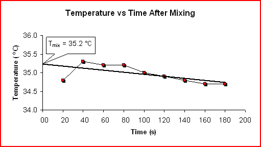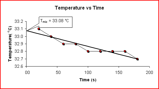 Because each of the reactions are measured for temperature change by calorimetry a Temperature vs Time graph will be drawn to obtain an accurate Tmix, the initial temperature of the mixtures.