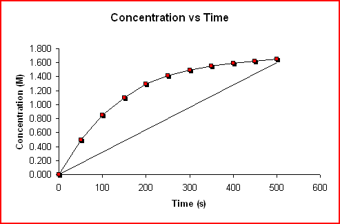 Ave RateB = Δ[B]/Δt = (1.6 M - 0 M)/(500 s - 0 s) = 0.0033 M/s