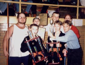 | L to R: Andy Lawless Naska national, NASKA regional, RSKC and SMAC rated and SMAC promoter. Eddie Miller RSKC rated, SMAC champion SMAC promoter. Lester J Easley NASKA, RSKC rated Good Will Games U.S.Gold medal winner. SMAC arbitrator. Brad Reynolds RSKC, SMAC champion, SMAC president Bryan Reynolds SMAC champion. Steve Clark SMAC arbitrator. |