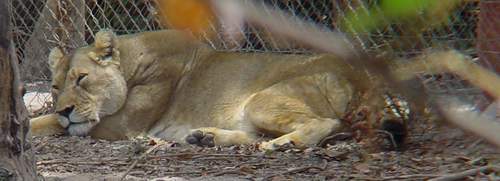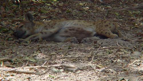 | Here's a snoozing hyena. Amazing how it blends into the background! |
